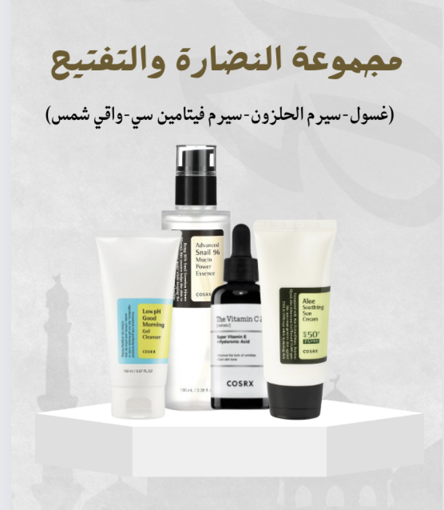مجموعة كوسركس للتفتيح والنضارة صُممت خصيصًا لتوحيد لون البشرة وتعزيز إشراقتها الطبيعية. تحتوي على 4 منتجات أساسية تعمل بتناغم لتقليل التصبغات، تهدئة البشرة، وتوفير الترطيب المثالي.